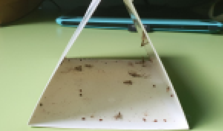 트랩을 이렇게 삼각형으로 만들어주어 권연 벌레가 자주 출몰하는 곳에 설치를 해준다. 혹시 진짜 권연 벌레들이 트랩에 달라붙을까? 하는 의심을 하면서 일단 트랩을 한 달 정도 설치해 보았다.