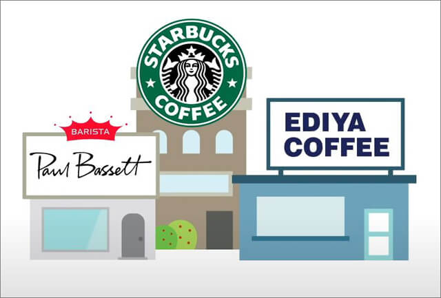 커피·베이커리: 스타벅스, 폴 바셋, 이디야, 파리바게뜨, 뚜레쥬르, 파리크라상