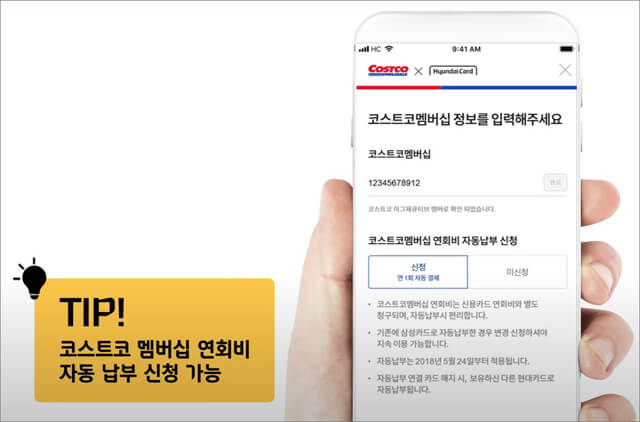 4. 코스트코 멤버십 번호를 입력 (※현대카드로 코스트코 멤버십 연회비 납부도 가능하다.)