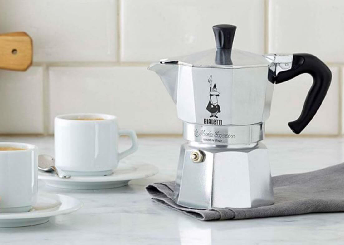 모카커피 메이커는 압력을 이용하여 간단하게 커피를 만들며 강한 향기와 맛을 가지고 있다.
