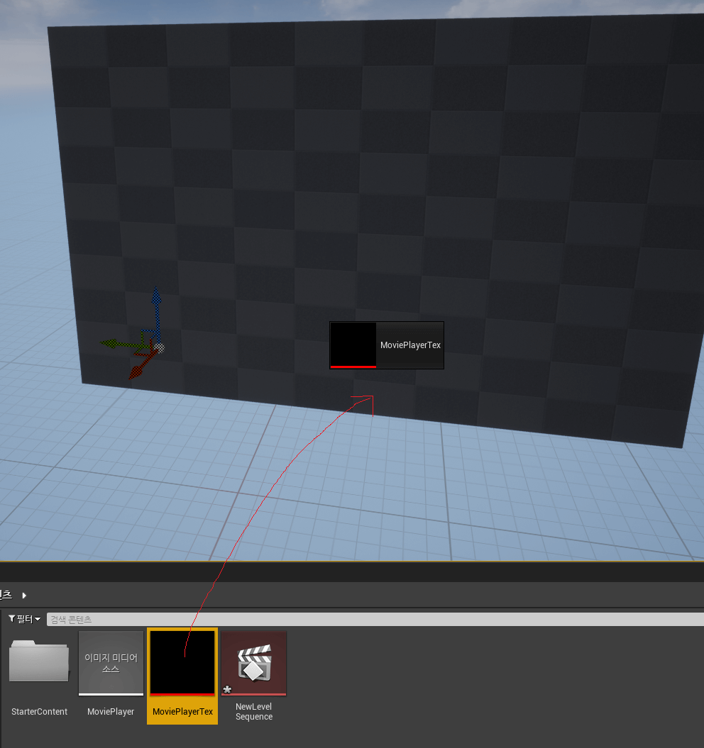 미디어 텍스쳐 (Media Texture)를 끌어서 레벨에 있는 Plane에 넣는다.