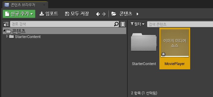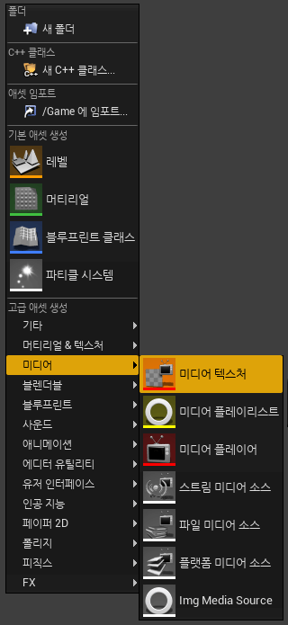 콘텐츠 브라우저에서 마우스 오른쪽 버튼을 누르면 미디어에서 Img Media Source(이미지 미디어 소스)를 선택한 후 원하는 이름을 넣는다.