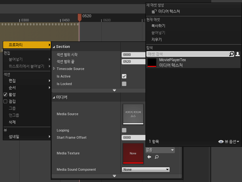 미디어를 클릭하면, Media Texture (미디어 텍스쳐)를 생성한다.