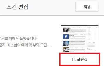 6. 스킨 편집 모드의 우측 상단에서 html 편집을 클릭하면 html모드로 전환된다.