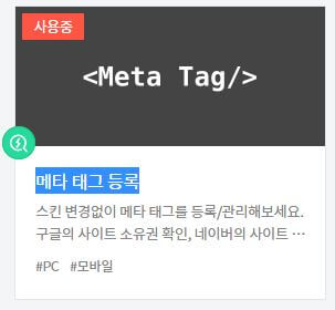 티스토리 블로그 관리 홈→플러그인→메타 태그 등록