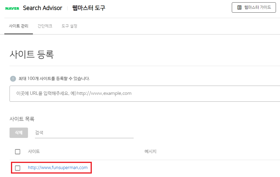 2. 자신이 등록한 웹사이트를 클릭해서 접속을 한다.