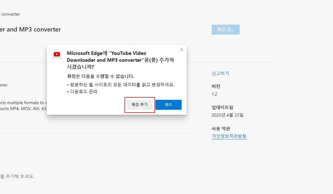 팝업창이 뜨면 '확장 추가'버튼을 클릭한다.