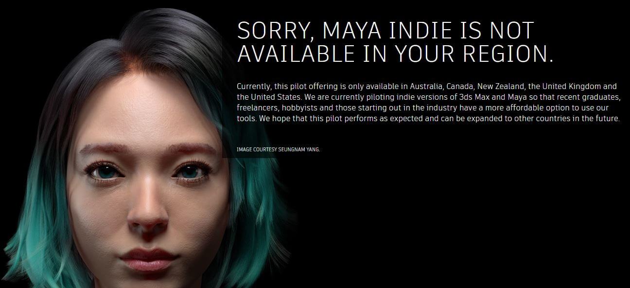 Autodesk 3dsmax, Maya 인디 버전은 일부 국가에만 출시를 했었다.